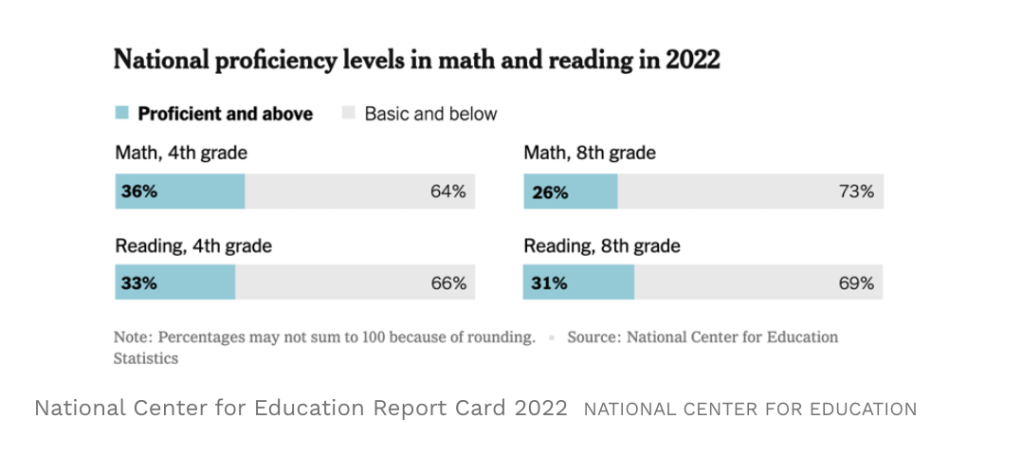 - “A mere 26 percent of eighth graders demonstrated proficiency, exhibiting a decrease from the 34 percent recorded in 2019.